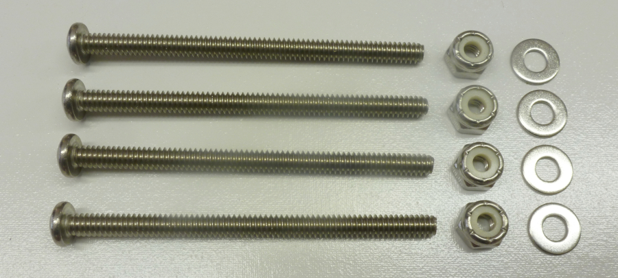 Includes four #10 X 3 inch stainless steel machine screws with nyloc nuts and washers
