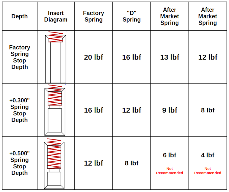 INSERT 2 Set 0.300 inches: Reduce Original Spring Compression 4 lbf