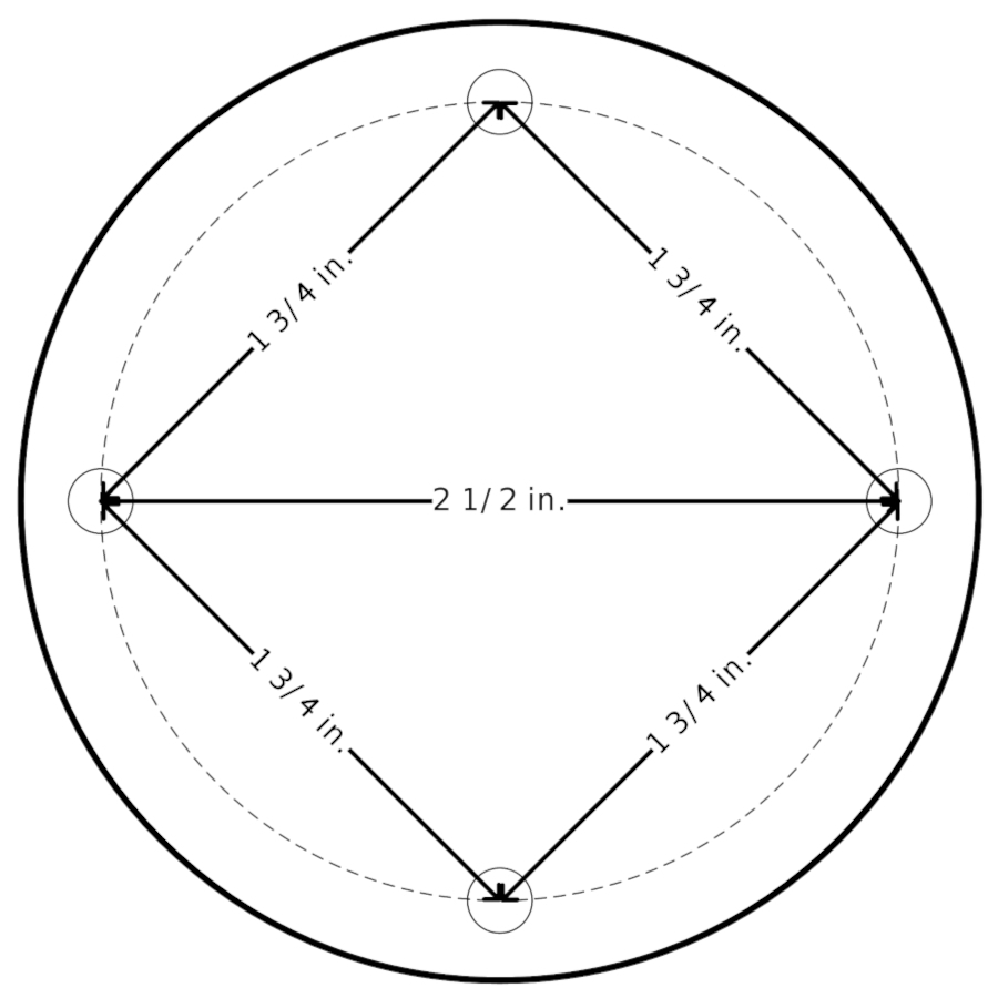 Mounting hole spacing 2.5 inches (see mounting hole pattern diagram)